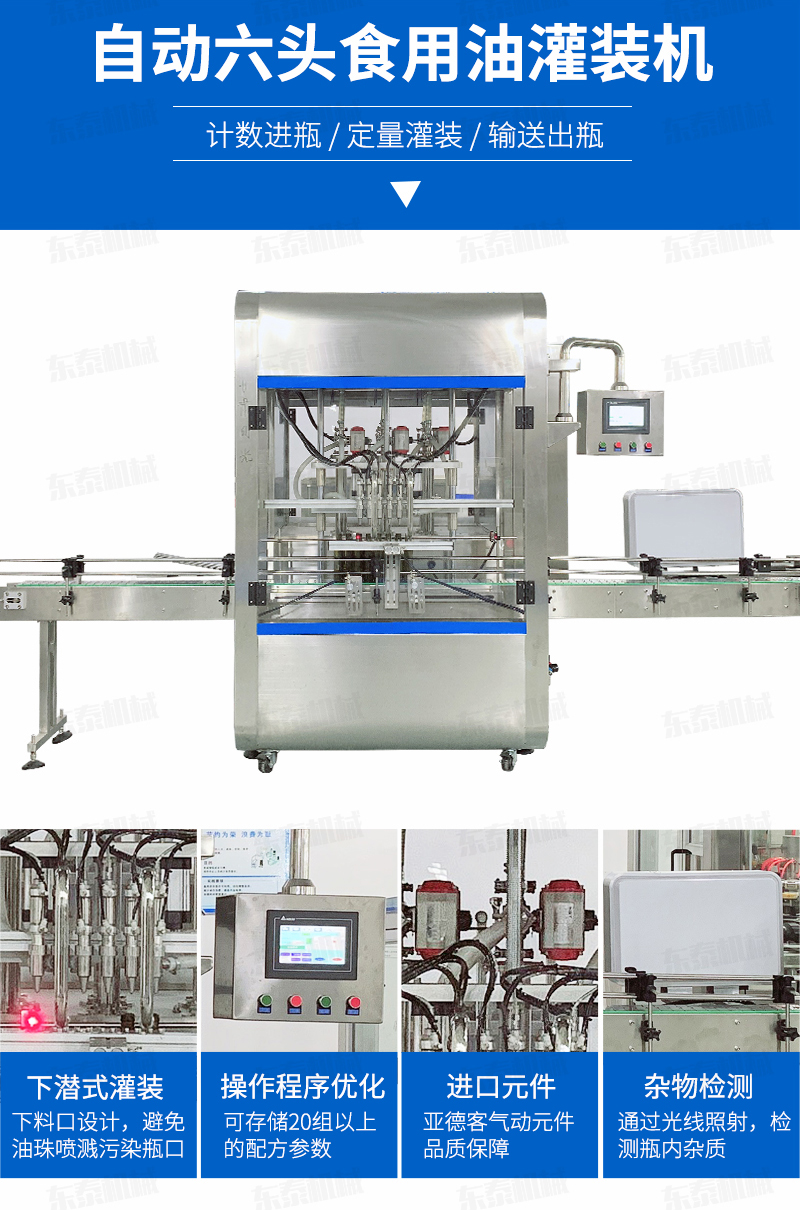 核桃油灌裝旋蓋生產(chǎn)線采用伺服柱塞式計(jì)量灌裝原理,適用于各種規(guī)格(0.1-1升可兼顧到2升灌裝)的南瓜籽油、榛子油、牡丹籽油、芝麻油、核桃油、山茶油、亞麻籽油、棉籽油、橄欖油、大豆油、玉米油、菜籽油等食用油灌裝。設(shè)備采用伺服系統(tǒng)定量推料,在人機(jī)界面數(shù)字化調(diào)節(jié)計(jì)量,并且可設(shè)定100ml或200ml等所需計(jì)量,觸摸屏一觸即達(dá),而且可以單頭微調(diào)計(jì)量。操作簡單,維護(hù)方便,節(jié)省人工成本,生產(chǎn)效率更高。