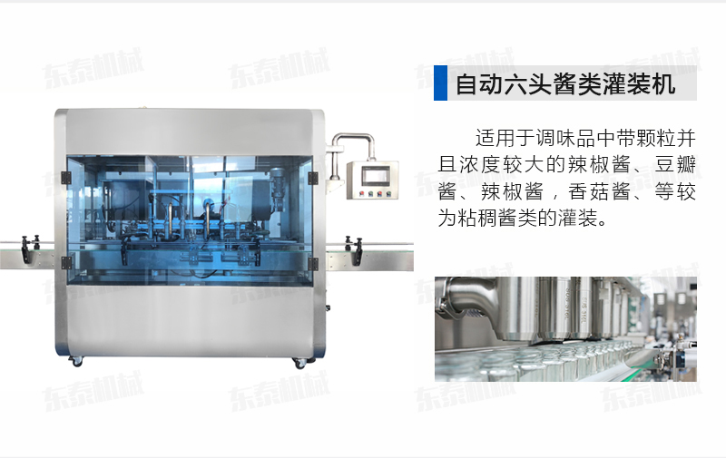 該系列灌裝機采用活塞式氣缸驅(qū)動原理,適用于調(diào)味品中帶顆粒并且濃度較大的辣椒醬、豆瓣醬、辣椒醬,香菇醬、等較為粘稠醬類的灌裝。灌裝轉(zhuǎn)閥可以根據(jù)客戶物料定做加大,以適應不同客戶物料的灌裝需求。配備臥式攪拌料斗,大限度的保障在灌裝過程中物料均勻、無油醬分離。該設備在設計上大大縮短了下料斗到灌裝頭的灌裝距離,克服了含油量大的物料(如:含芝麻粒的辣椒油)在灌裝過程中出現(xiàn)的有些瓶油多,有些瓶醬多的灌裝誤差大的缺點。