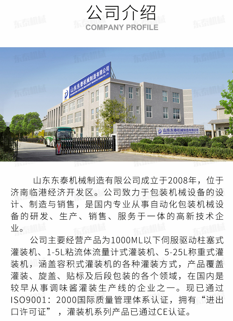 沈陽東泰機械隸屬于山東東泰機械,主營粉劑包裝機、醬類醬料包裝機、食用油灌裝機、食品包裝機、包裝流水線、灌裝生產(chǎn)線等產(chǎn)品,并且為東北地區(qū)客戶提供售后維修服務...