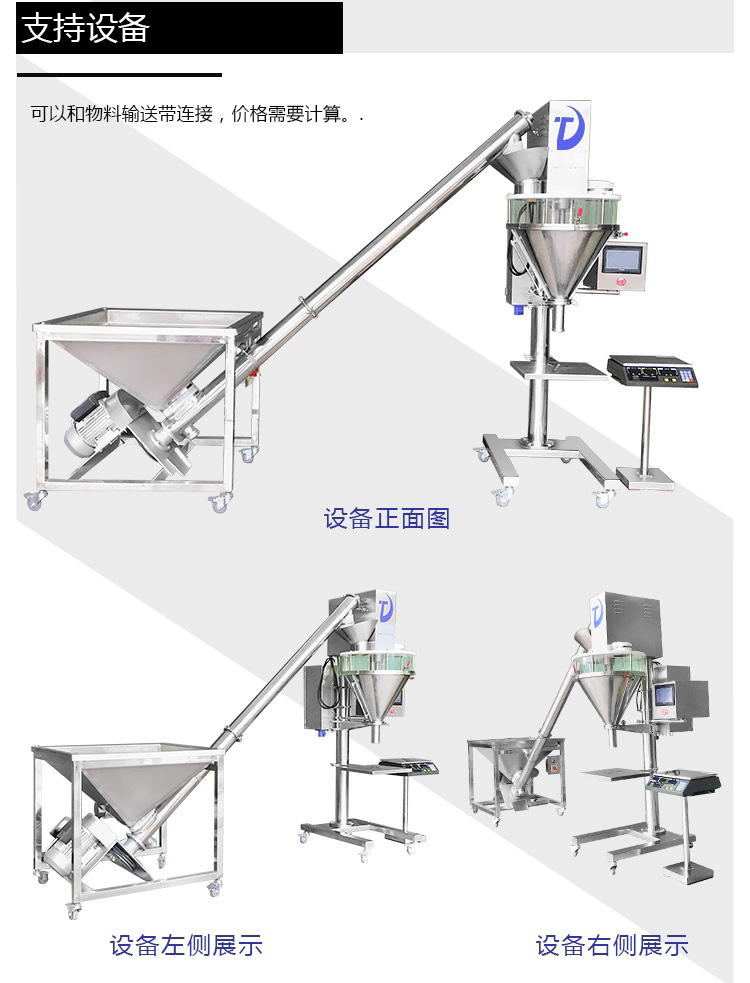 該粉劑包裝機適用于有一定流動性的粉劑狀、顆粒狀物料,可適合袋類、罐類、瓶類等各種包裝容器粉劑定量包裝,速度快、精度高。如農(nóng)藥、獸藥、預(yù)混料、添加劑、奶粉、淀粉、調(diào)味品、酶制劑、飼料等粉劑狀、雞精、餃子粉、葡萄糖、奶粉、綠豆粉、淀粉、調(diào)味料、飼料、顆粒狀物料的定量包裝。粉劑包裝機可以使用各種可熱封合的復(fù)合膜包裝材料,其包裝材料可印刷成連續(xù)商標(biāo)圖案,也可以印刷成帶有色標(biāo)的單袋完整商標(biāo)圖案。