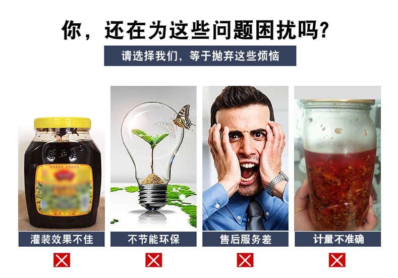 該生產(chǎn)線適合中小口徑三旋、四旋玻璃瓶調(diào)味醬的分裝,適合醬料、含顆粒黏稠物料的灌裝,物料接觸部分均采用316不銹鋼,整機(jī)304不銹鋼,符合食品衛(wèi)生標(biāo)準(zhǔn)。該機(jī)設(shè)計(jì)合理,機(jī)型小巧,立式結(jié)構(gòu),節(jié)省場(chǎng)地,操作方便。啟動(dòng)部分均采用德國(guó)FESTO和臺(tái)灣AirTack的氣動(dòng)元件。灌裝閥有氣動(dòng)閥控制,灌裝精度更高,灌裝量和灌裝速度均可任意調(diào)整,灌裝悶頭采用防拉絲及升降灌裝裝置。