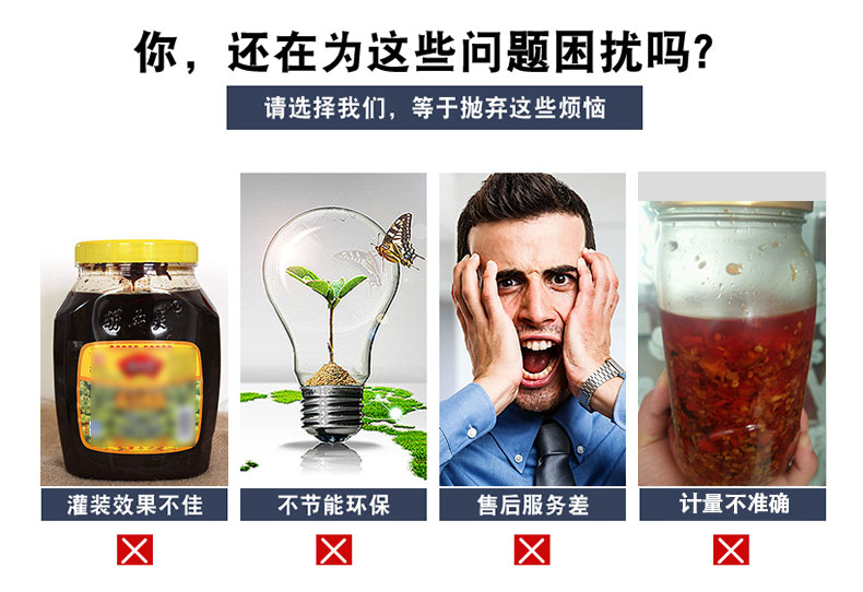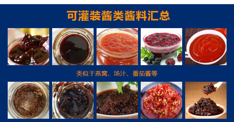 此款醬類灌裝機(jī)為觸摸屏操作,由PLC控制,自動化程度高。主要適用于番茄醬、甜面醬、沙拉醬等醬類的灌裝。