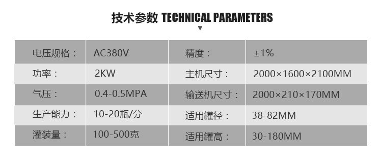 3、 該設(shè)備在設(shè)計(jì)上大大縮短了下料斗到灌裝頭的灌裝距離,克服了含油量大的物料(如:含芝麻粒的辣椒油)在灌裝過程中出現(xiàn)的有些瓶油多,有些瓶醬多的灌裝誤差大的缺點(diǎn)。